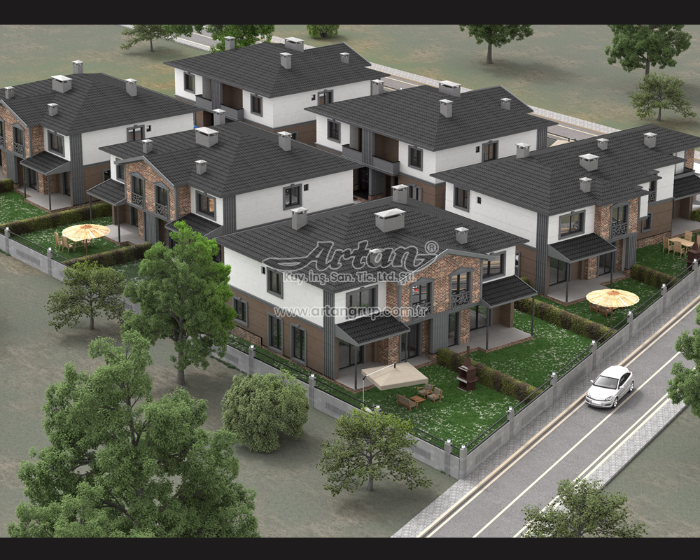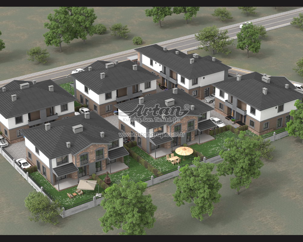 Projemizde c30 sınıfı beton kullanılmıştır. Villa aralarında çift duvar örülmüştür.