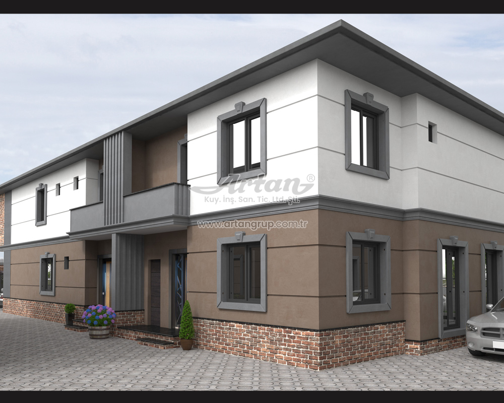 Projemizde c30 sınıfı beton kullanılmıştır. Villa aralarında çift duvar örülmüştür.